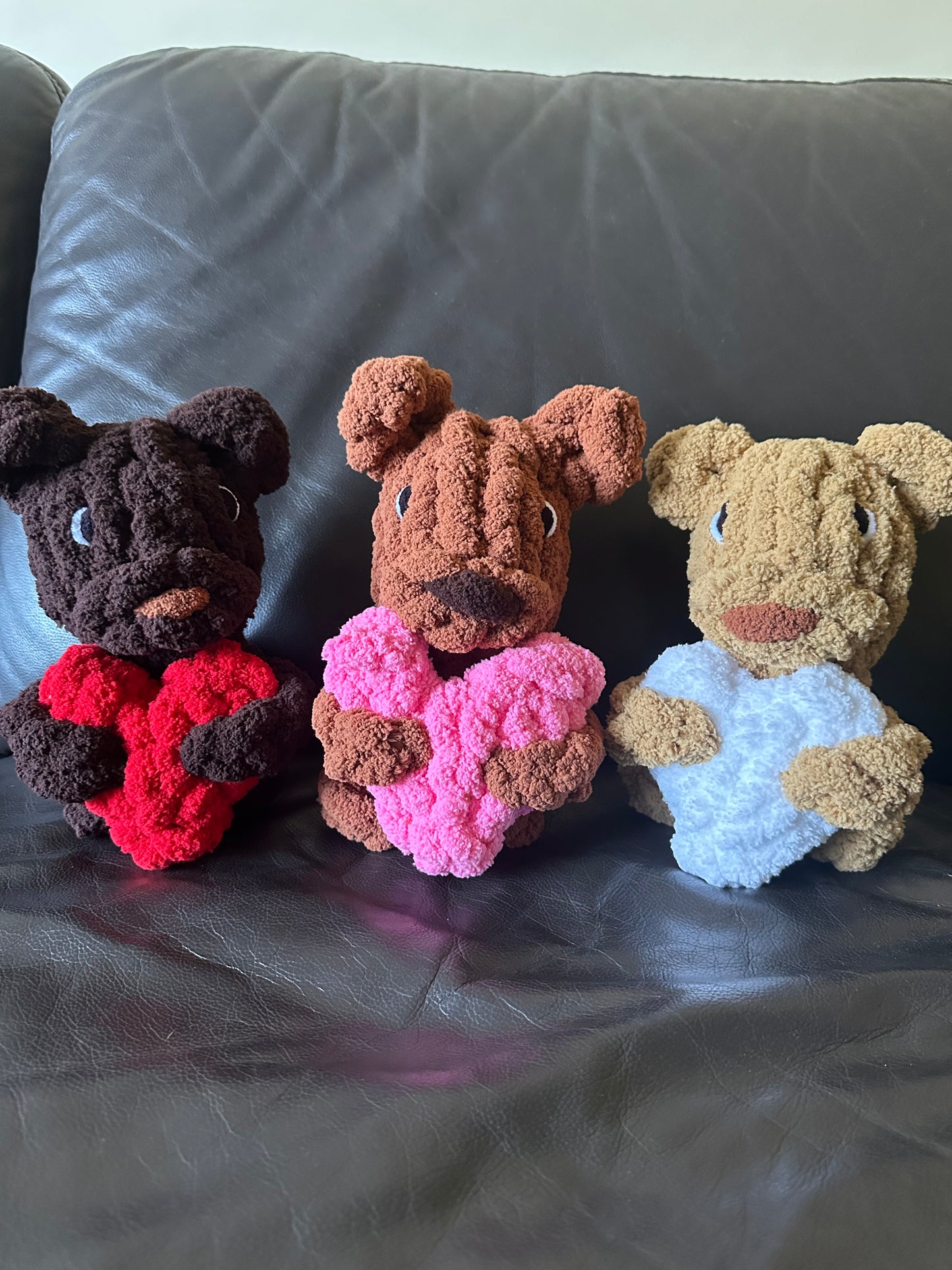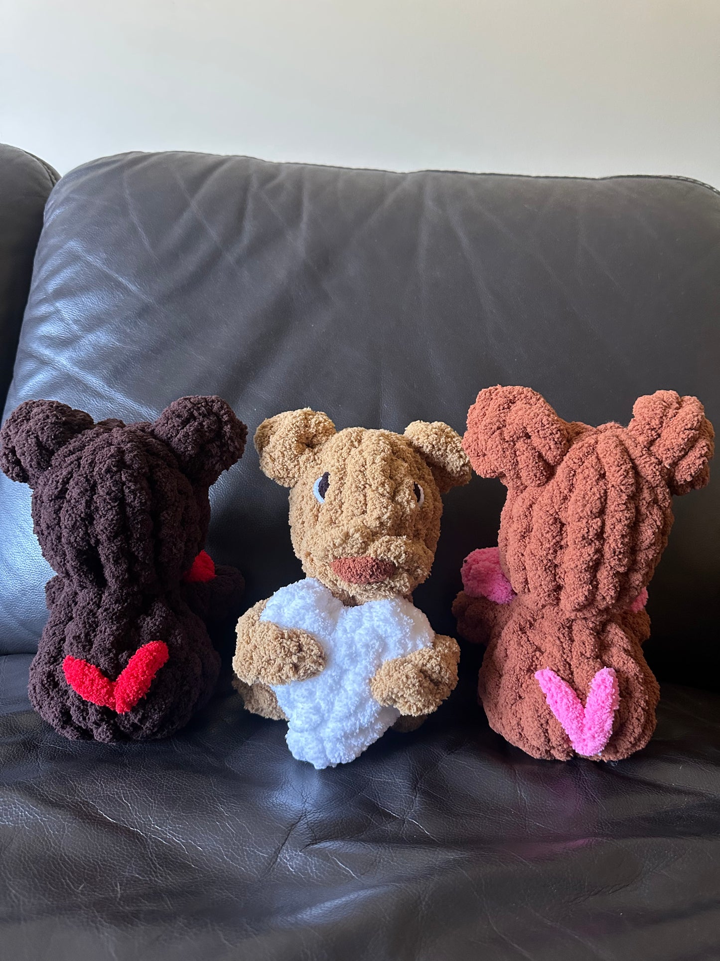 This adorable hand-knit teddy bear is the perfect symbol of love and comfort. Soft, huggable, and just the right size for little hands, each bear comes holding a plush love heart—making it a thoughtful gift for someone special.