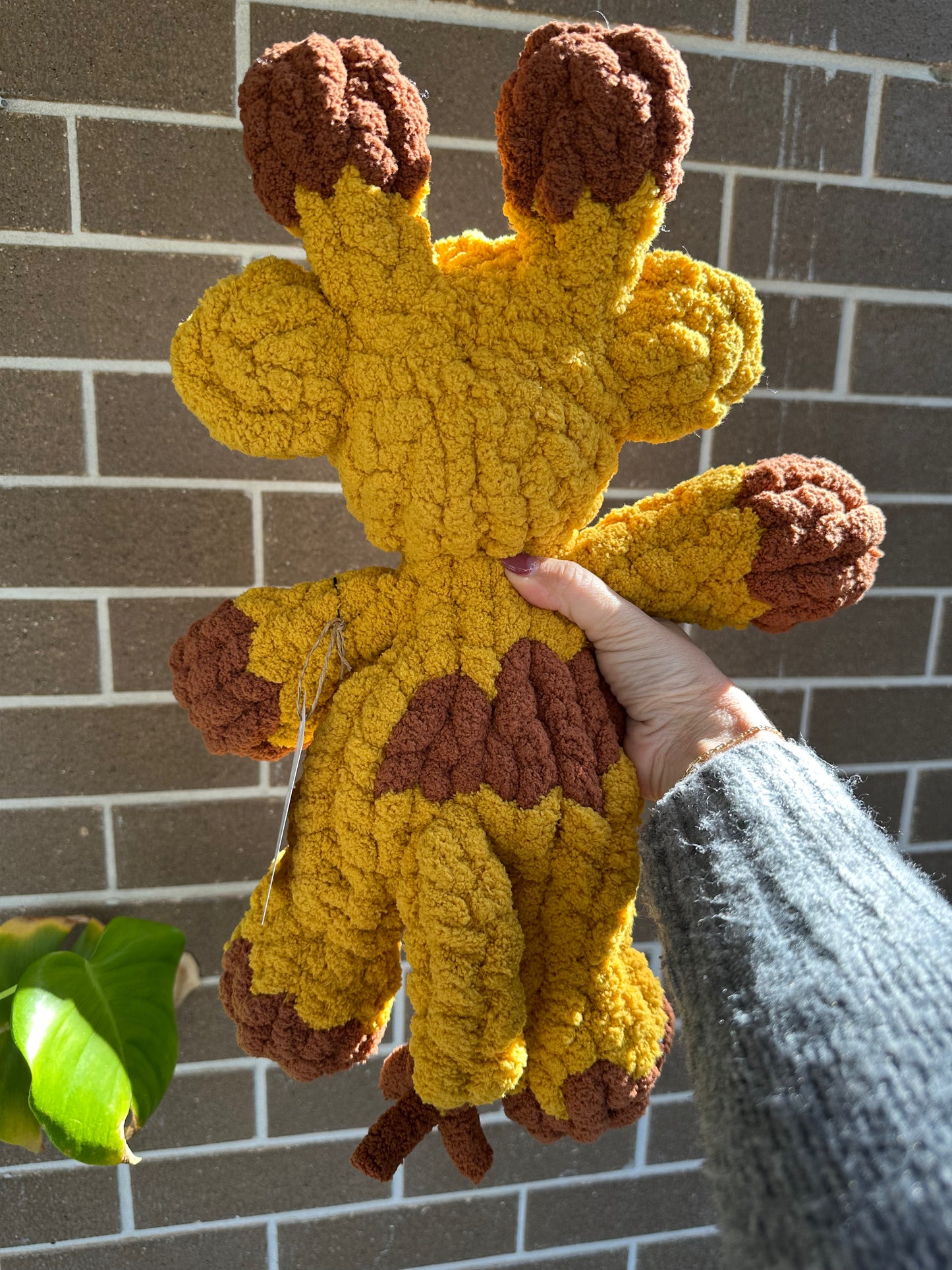 Lovingly hand-knit with buttery-soft chunky knot yarn, Gigi the Giraffe is a sweet and snuggly friend ready to bring joy to your little one’s world. Standing approx. 16" tall, Gigi is filled with plush stuffing in her head and body for that perfect squish factor. With her gentle features and playful charm, she makes an adorable gift, nursery companion, or keepsake for any age. Each Gigi is handmade, making her truly one of a kind—just like the little hands she’s meant to hold.