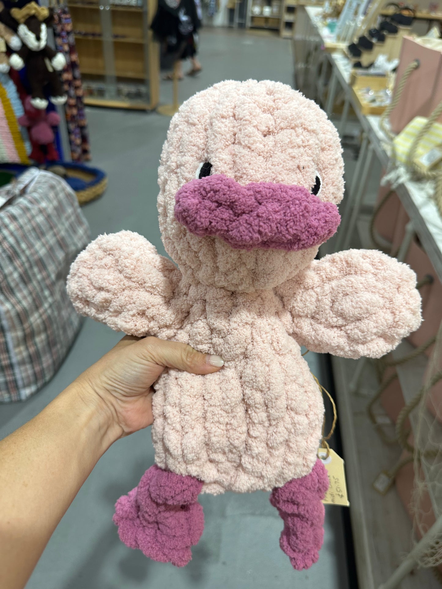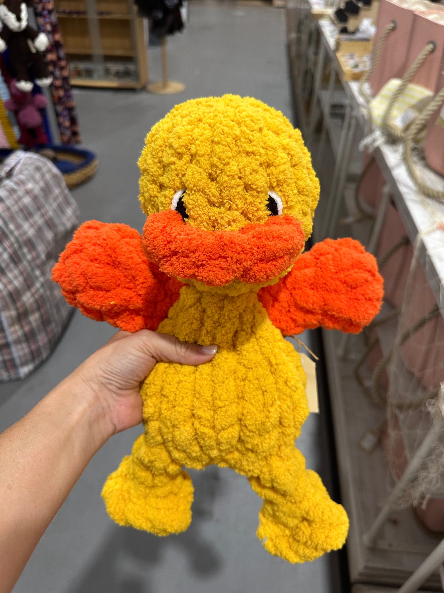 Meet Marley Duck – a soft and cuddly mini snuggler, approximately 16 inches tall. Marley features a plush-filled head and a body made from our signature chunky blanket yarn, offering a cosy, blanket-like feel with every cuddle.