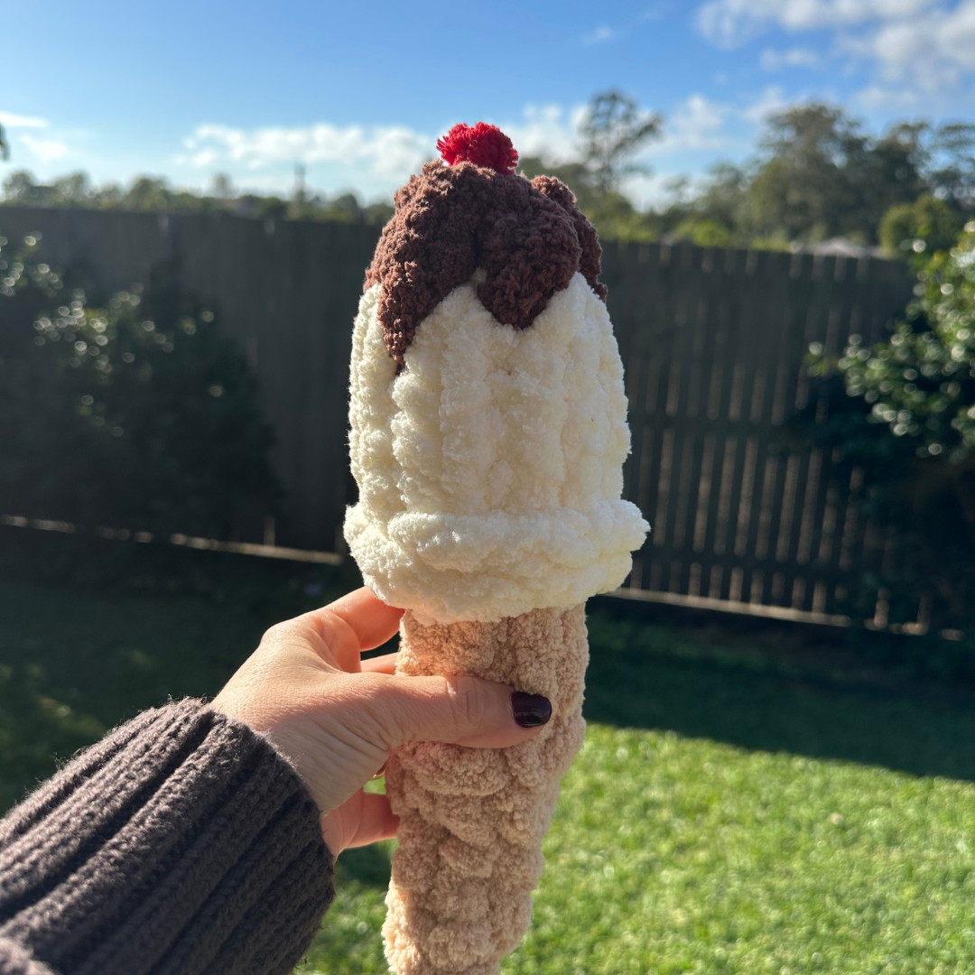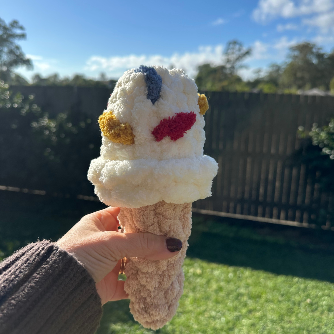 These fun plush ice cream cones are the perfect treat with zero melting and endless smiles! Handmade with soft, squishy yarn, each cone can be custom designed to look like your favourite ice cream, from classic vanilla and chocolate to rainbow sprinkles, choc tops, or your own creative flavour combo.