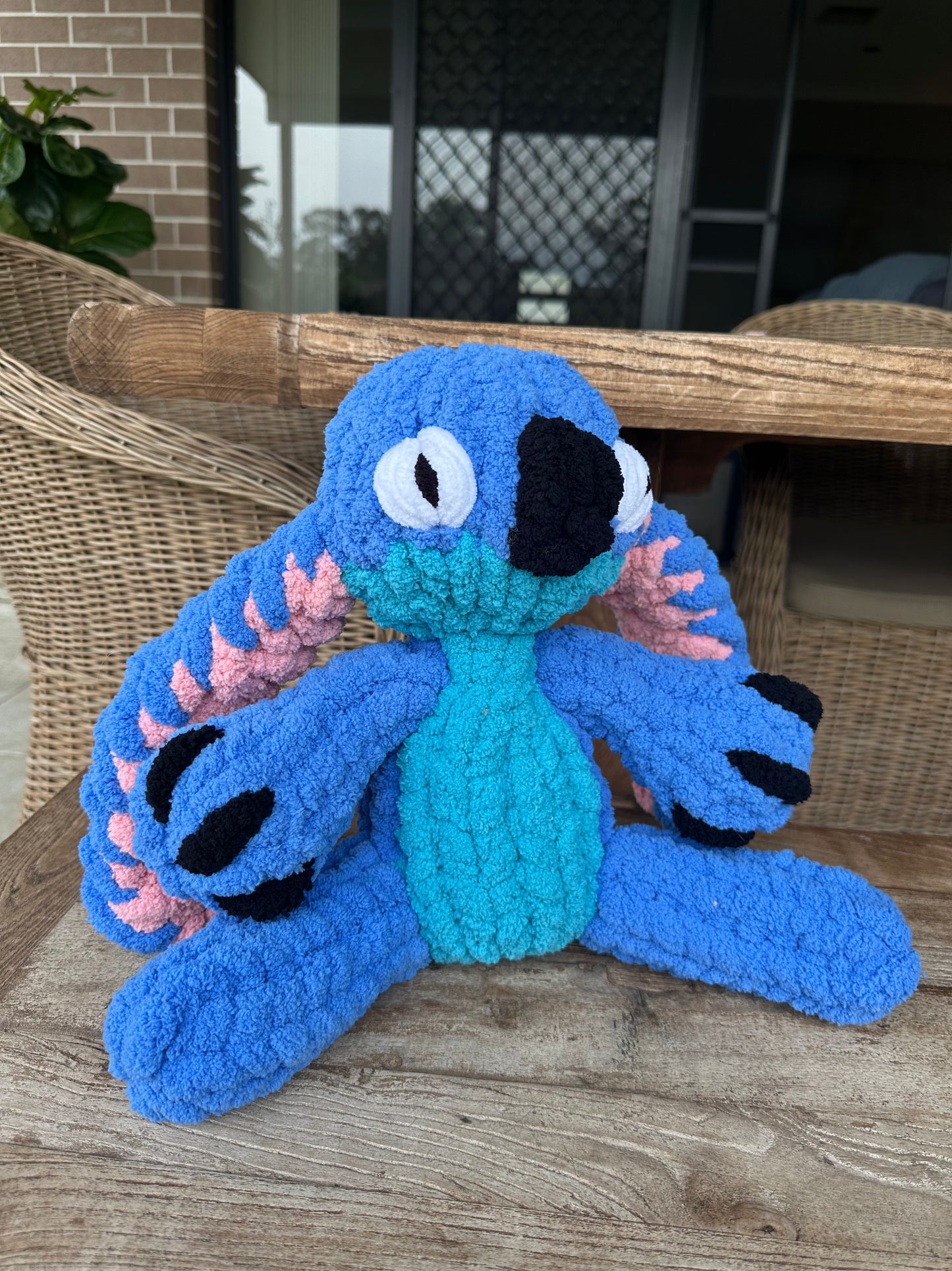 This Stitch-inspired handmade plush toy is the perfect gift for fans of the beloved animated movie Lilo & Stitch. Created using ultra-soft, chunky yarn, this plushie is designed for cuddling, display, or imaginative play.